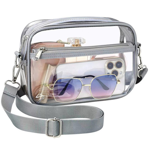 Op Maat Gemaakte Doorzichtige Crossbody Tas Transparant Doorzichtig Door Vinyl Stadion Goedgekeurde Gsm-Portemonnee Messengertassen